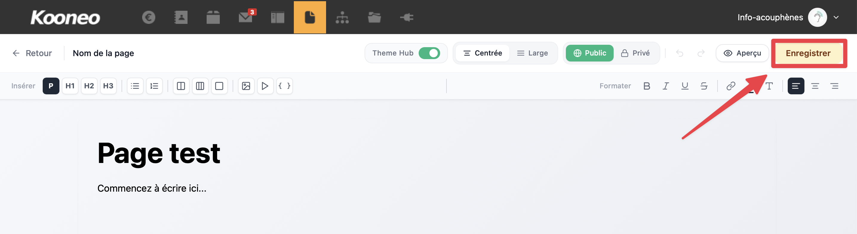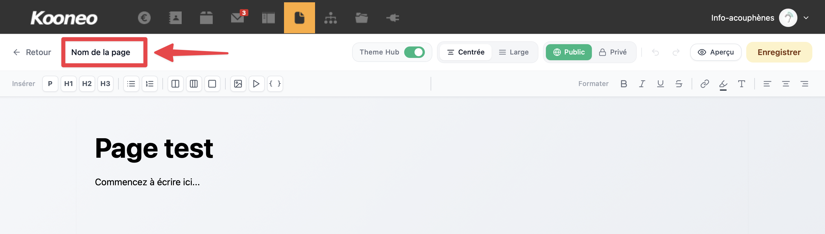 - Rédigez le contenu de la page