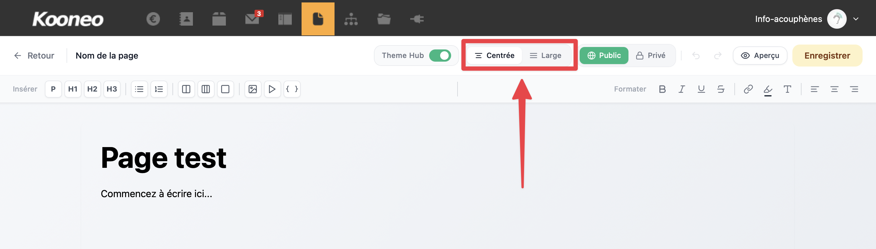 - Sélectionnez Large pour un contenu sur toute la largeur
