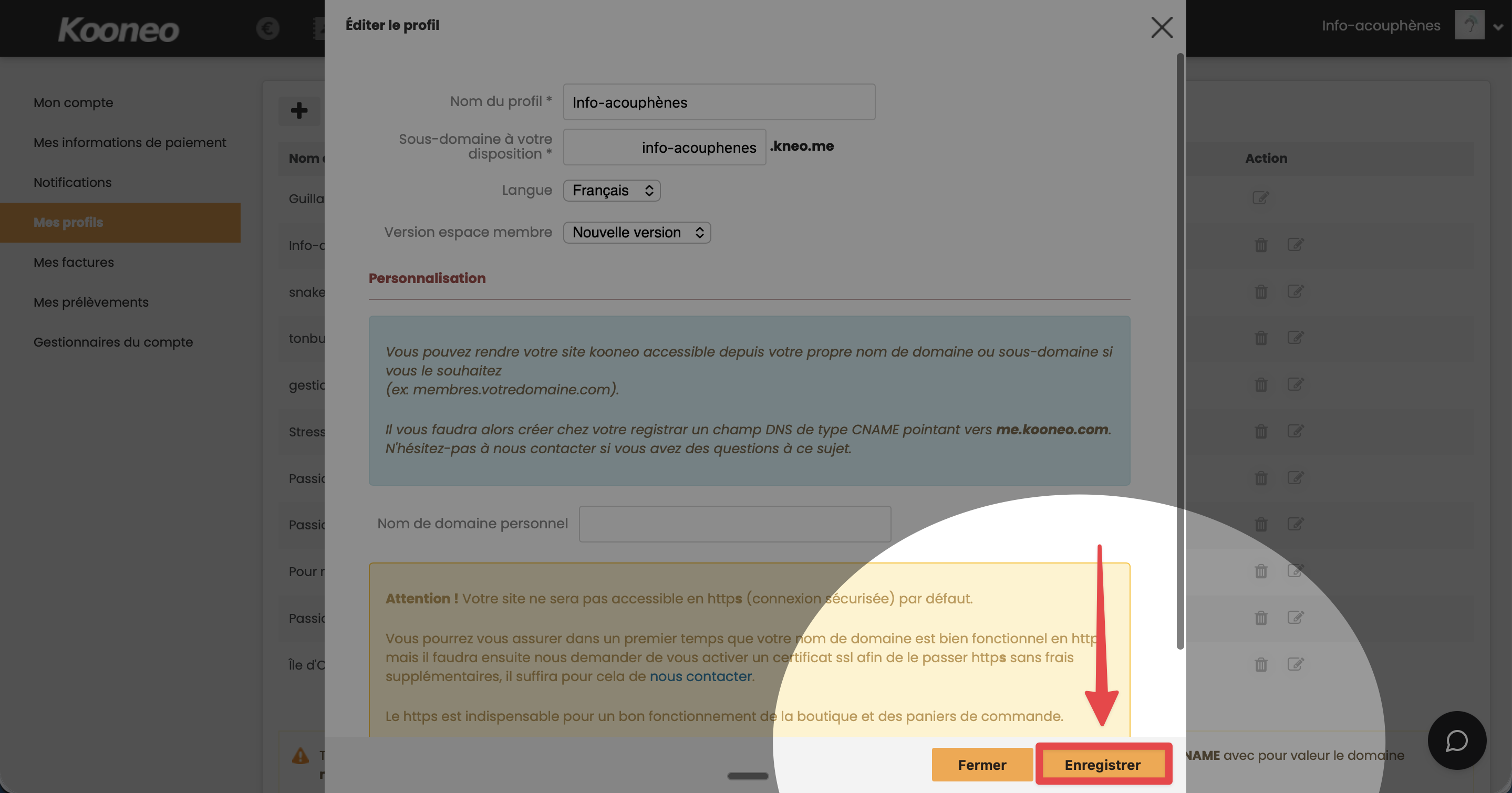 - Cliquez sur le bouton « Enregistrer » en bas de la fenêtre « Éditer le profil ».