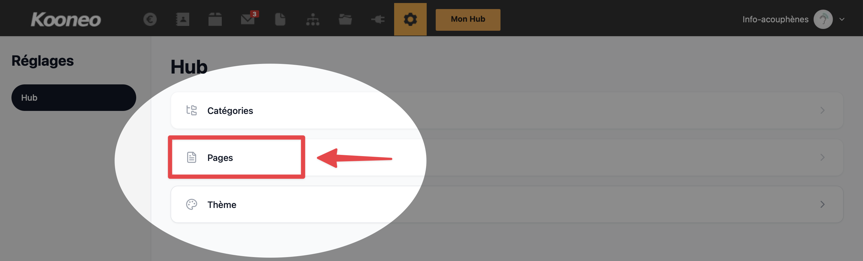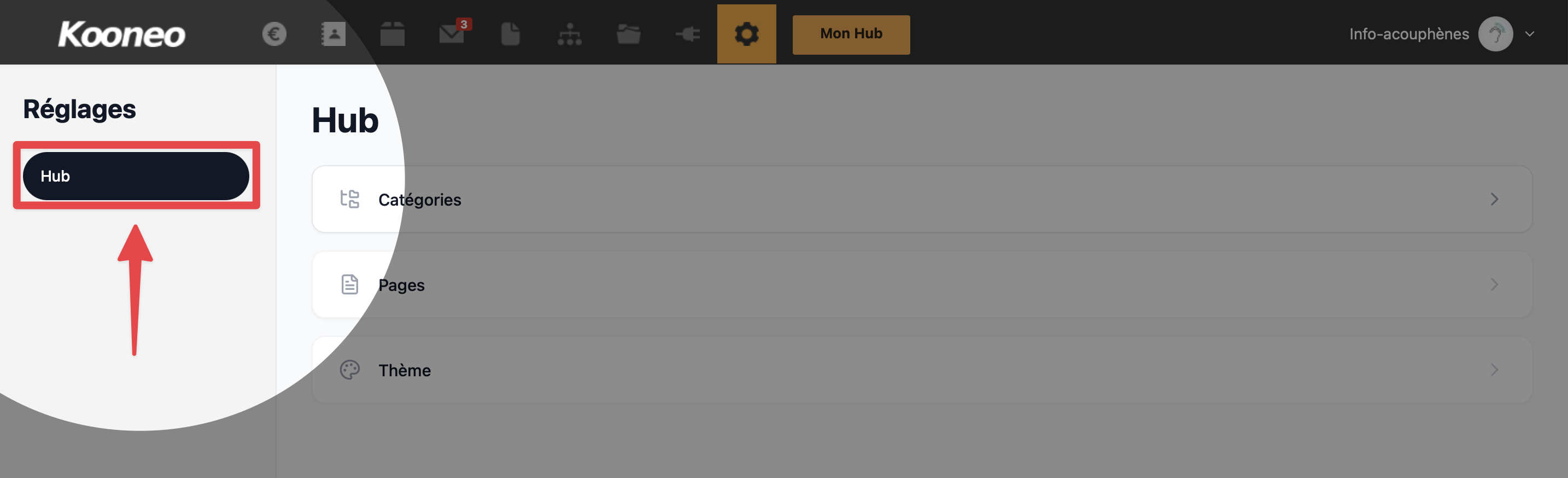 - Accédez aux réglages du Hub