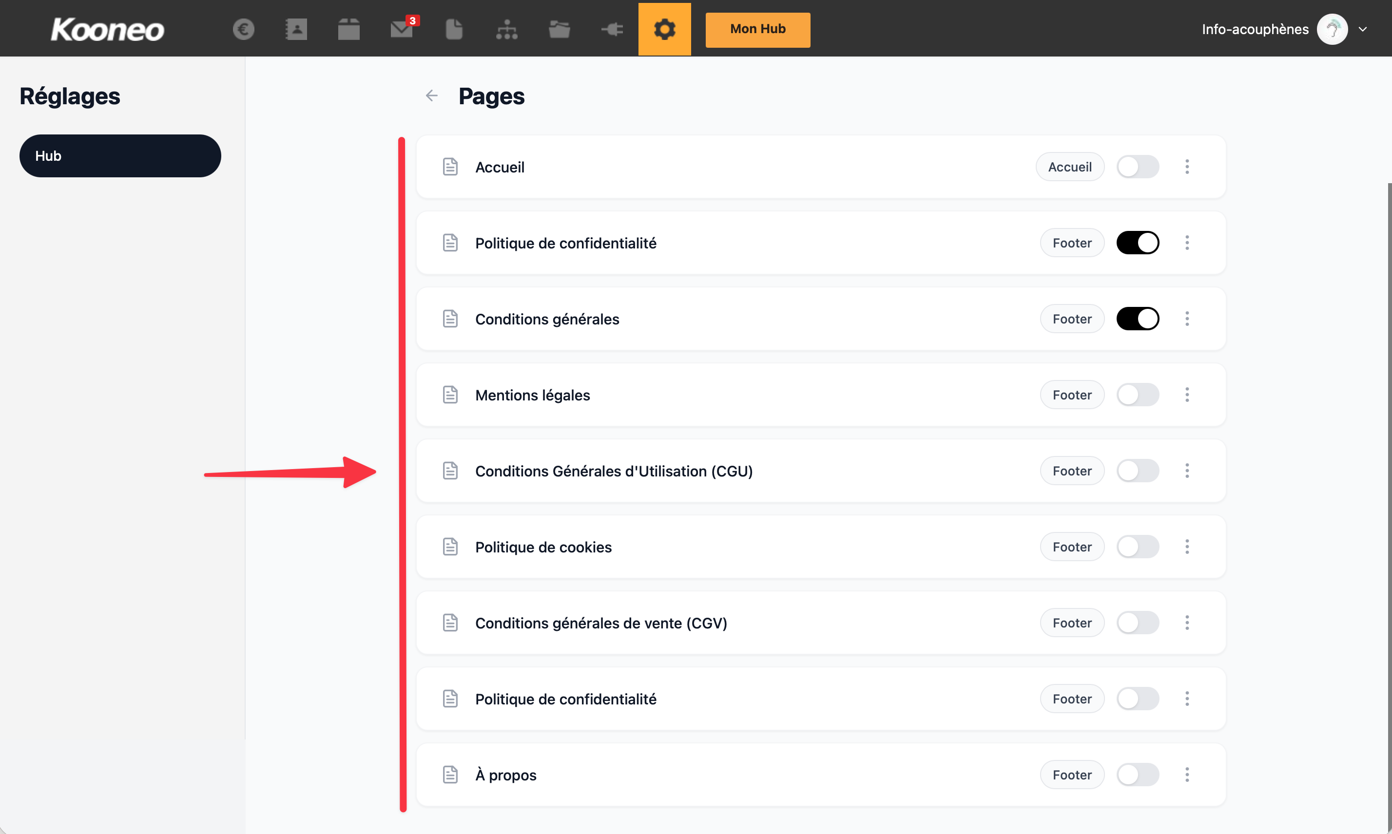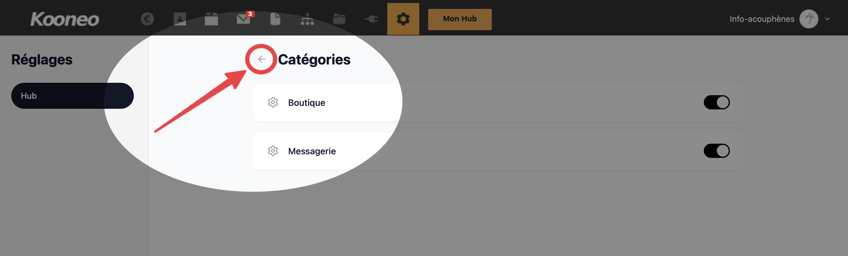 Cette nouvelle page Réglages s’inscrit dans l’évolution de Kooneo vers une plateforme plus moderne et plus intuitive, vous permettant d’optimiser la lisibilité de votre Hub et d’offrir à vos clients une expérience plus fluide et cohérente.