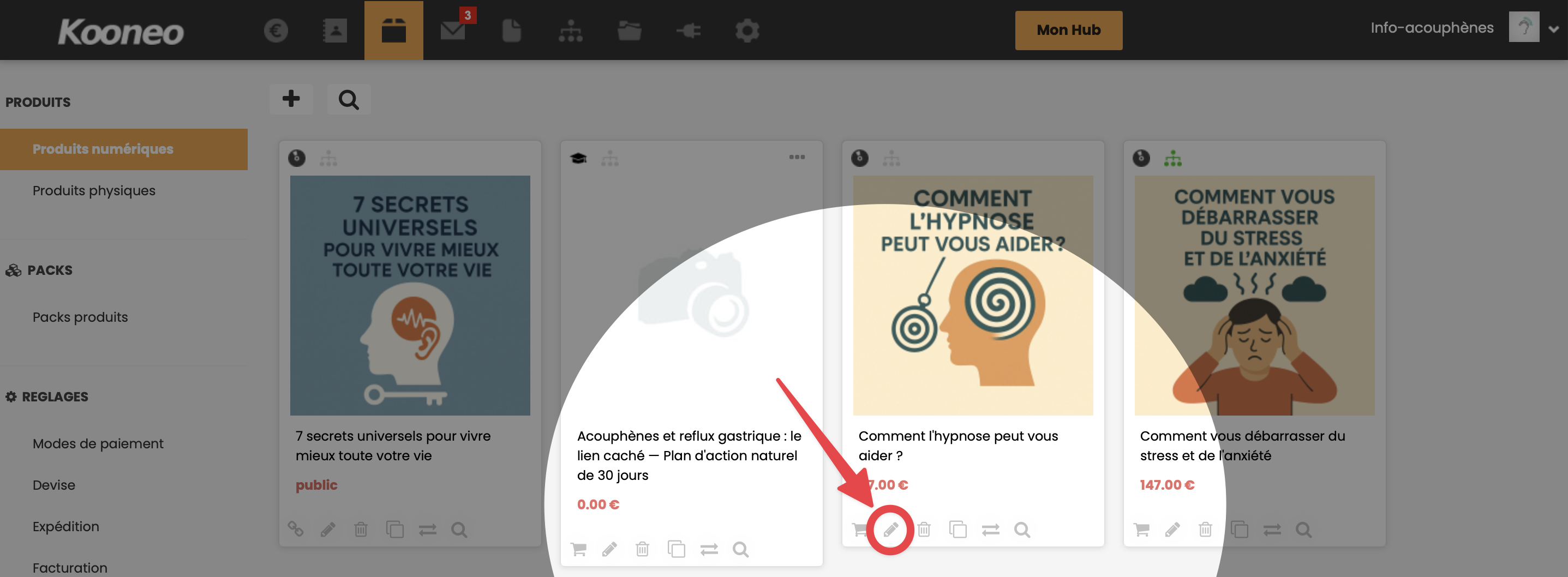 - Cliquez sur l'icône Modifier sous le produit concerné