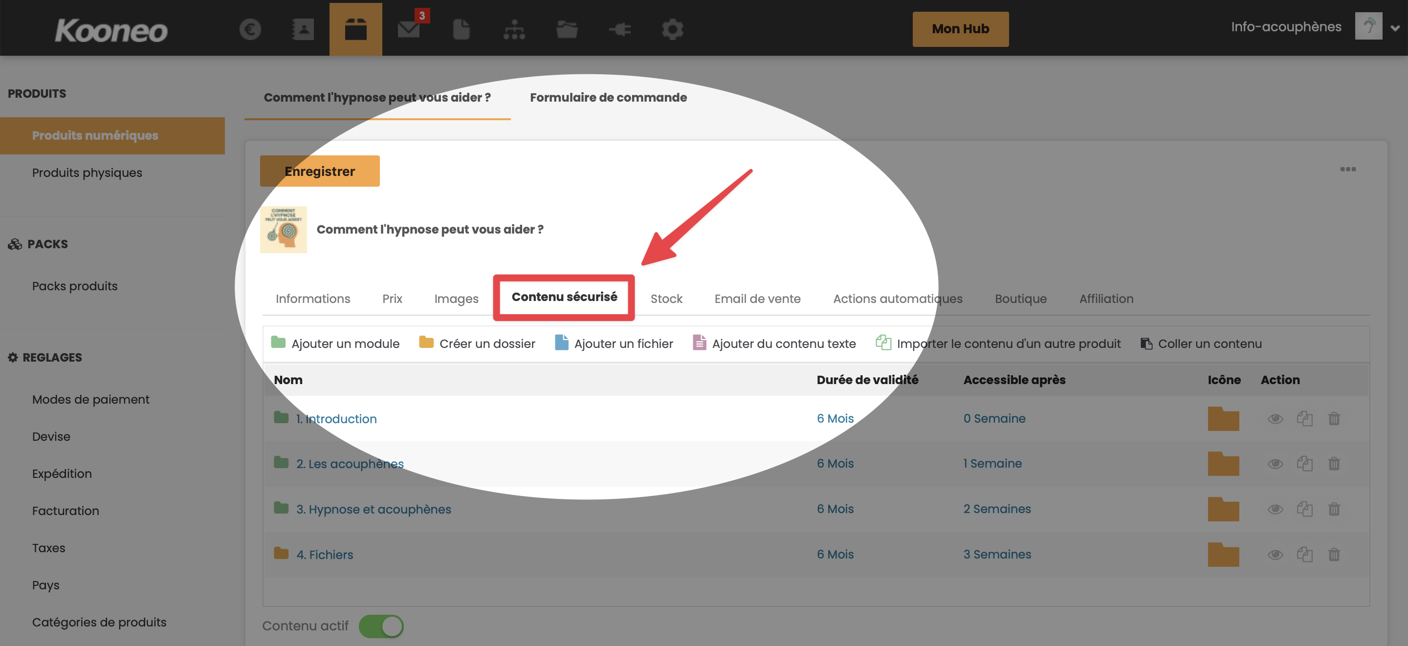 - Cliquez sur l'onglet Contenu sécurisé
